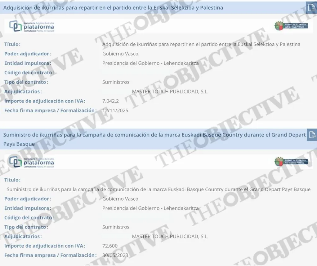 No es la primera vez que la Lehendakaritza lanza una licitación de este tipo. Ya en 2023, durante la etapa de Iñigo Urkullu como lehendakari, Presidencia adjudicó el «suministro de ikurriñas para la campaña de comunicación de la marca Euskadi Basque Country durante el Grand Depart Pays Basque» a la misma firma, Master Touch, por cerca de 60.000 euros.
