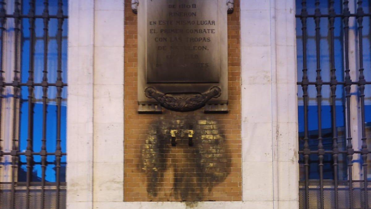 El Gobierno de la Comunidad de Madrid ha denunciado que durante la noche se ha producido un acto vandálico en la sede del Ejecutivo de la Real Casa de Correos cuando alguien, aún sin determinar, ha prendido fuego a la corona de flores que adorna la placa en memoria a los Héroes del 2 de Mayo, que defendieron la ciudad de la invasión de las tropas francesas. El pequeño incendio ha dañado el monumento, que ha quedado ennegrecido.