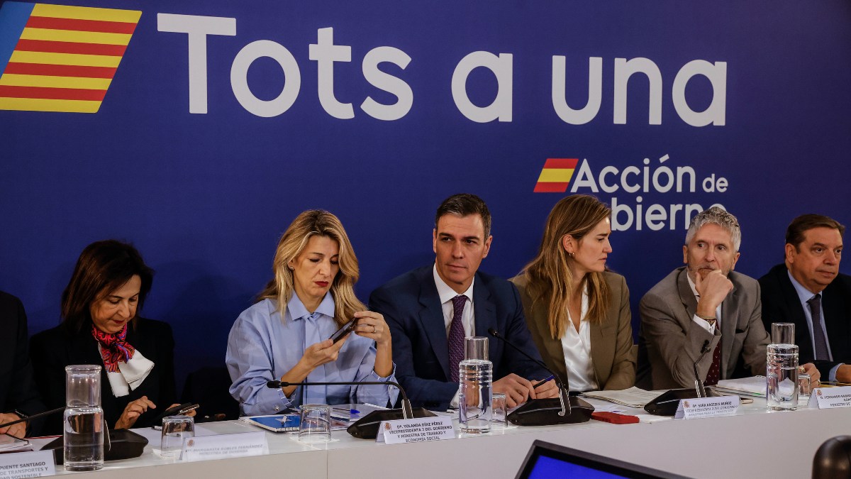 Pedro Sánchez junto a algunos de sus ministros durante la Comisión Interministerial sobre la DANA este miércoles. | Rober Solsona (Europa Press)