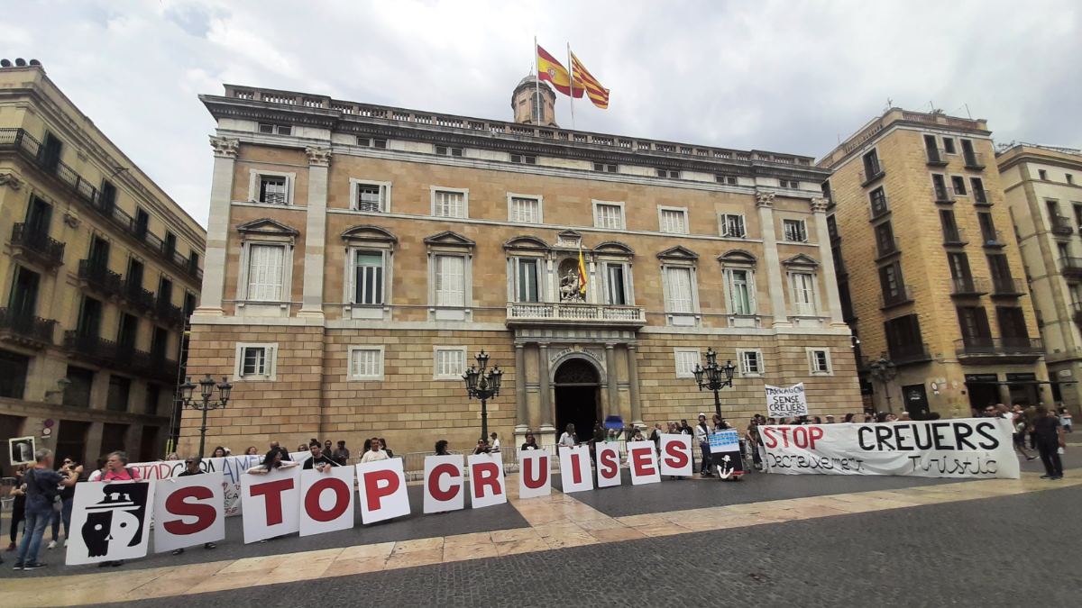 Protesta frente al Palau de la Generalitat contra los cruceros. | Red social X