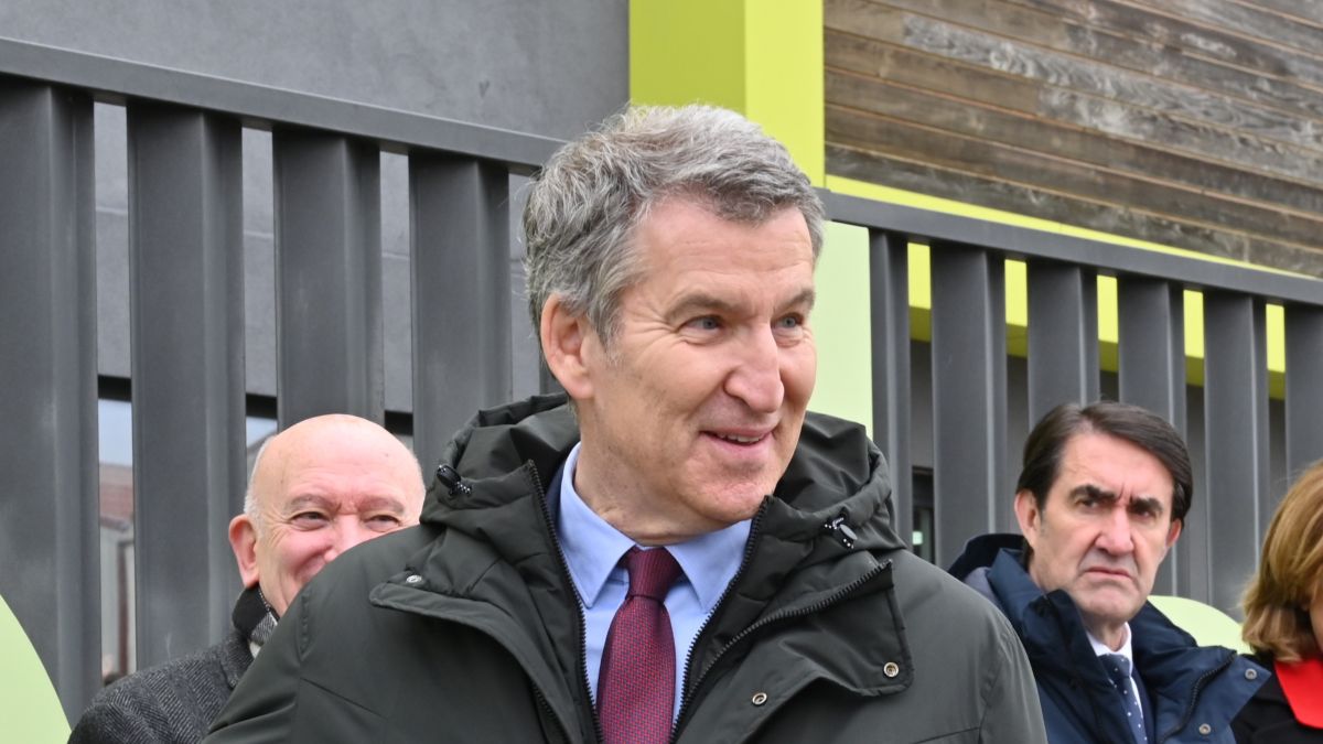 El líder del PP, Alberto Núñez Feijóo, este jueves en Carrión de los Condes (Palencia). | EFE/ Almudena Álvarez