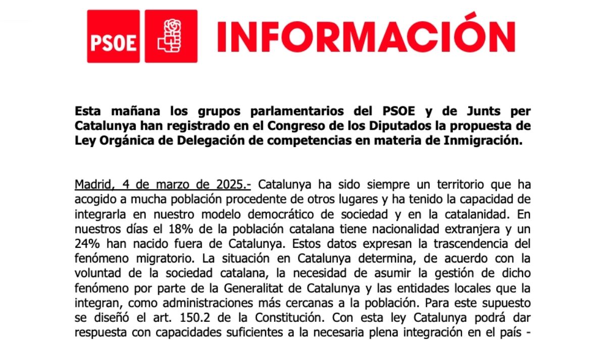 Lea aquí el documento completo del PSOE explicando el acuerdo con Junts: