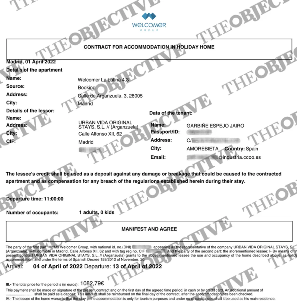 El piso, ubicado en el número 3 de la calle Arganzuela, era propiedad de Welcomer Group, una compañía que ofrece apartamentos de diseño en Madrid. En cuanto al arrendador, se trata de Urban Vida Original Stays, un operador de edificios destinados a alquileres alternativos como el corporate housing o el coliving. El contrato especificó que la estancia era para un único ocupante, la mencionada secretaria general de Industria de CCOO.