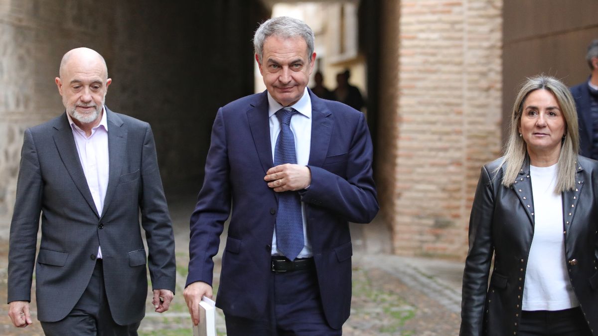 El periodista Enrique Sánchez Lubián, el ex presidente del Gobierno, José Luis Rodríguez Zapatero, y la delegada del Gobierno en Castilla-La Mancha, Milagros Tolón. | Juanma Jiménez / Europa Press