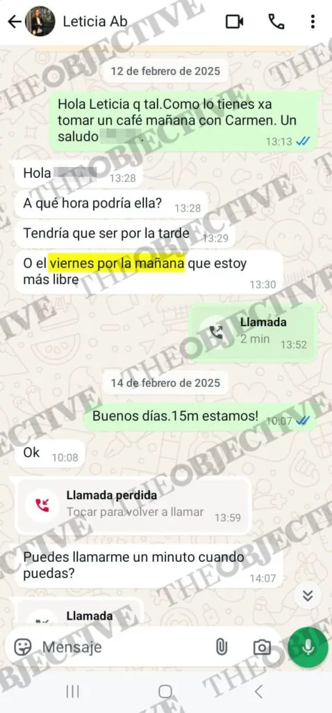 Según consta en los mensajes de WhattsApp a los que ha tenido acceso THE OBJECTIVE entre Leticia de la Hoz y un representante de Pano, los contactos se iniciaron hace tres semanas a raíz de unos negocios que Pano y uno de sus socios iban a realizar a través de la consultora IDBO. En este intercambio de mensajes se evidencia una primera cita el viernes 14 de febrero, tras la cual la letrada realizó una llamada al segundo empresario, a quien solicitó llamarle «en cuanto puedas». Horas después le volvió a llamar. A partir de ese momento, los contactos continuaron tanto directamente como a través de dos colaboradores externos de la consultora, quienes emplazaron a Pano y su socio al encuentro del viernes 21 que se celebró a las 20 horas en el despacho de IDBO. Según las fuentes presenciales consultadas, De la Hoz trasladó a Pano las condiciones para el pacto: «Dejad al margen al PSOE y no mencionéis a Santos Cerdán».