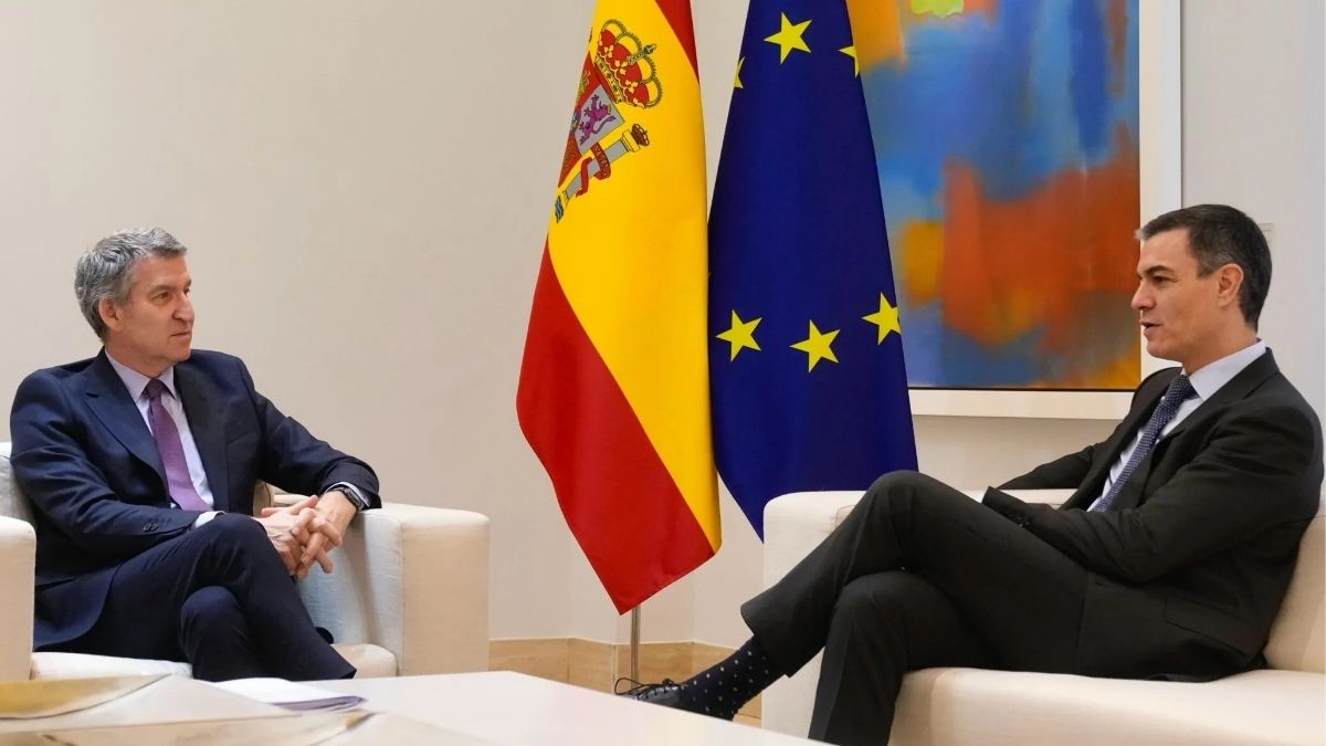 El presidente del Gobierno, Pedro Sánchez, y el del Partido Popular, Alberto Núñez Feijóo, este jueves en el Palacio de la Moncloa | PP / Tarek