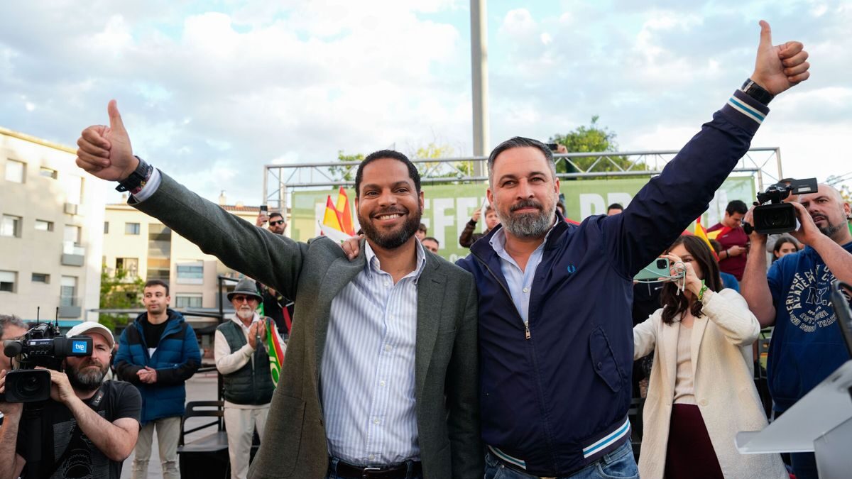 El secretario general, Ignacio Garriga, y el presidente, Santiago Abascal, durante un mitin de Vox. | EFE