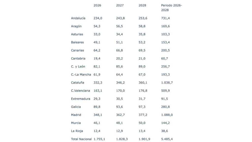Esta es la tabla con el impacto que, según el Gobierno, tendrá en cada comunidad autónoma el rechazo a la senda de estabilidad (en millones de euros):