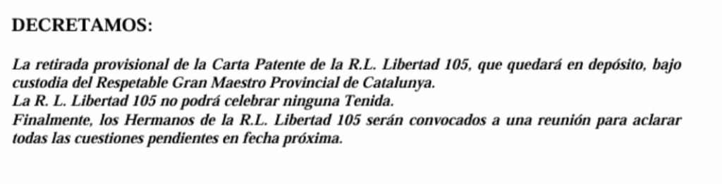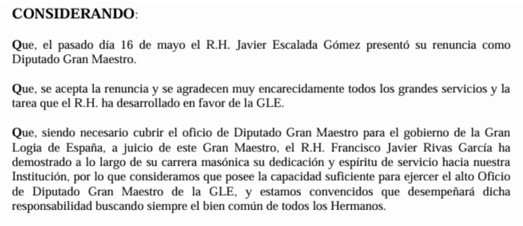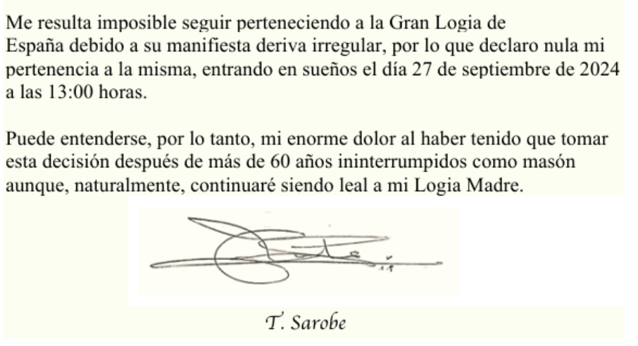 «Solo así se explica el uso en tus cartas y comunicaciones de palabras como bulos y otras expresiones que a diario aparecen en las declaraciones de los políticos. Ejerces de Gran Maestro como si se tratase de una extensión más de tu vida política: las mismas formas, el mismo lenguaje y la misma ambición por ganar sin que te importe la forma, ni la división que creas, ni el daño reputacional a la Orden. Solo así se entiende que te hayas atrevido a cercenar a los Hermanos el derecho fundamental al voto, en aplicación de una norma que existe desde la noche de los tiempos, la de participar o excusarse en las Grandes Asambleas a las que somos convocados, que fue diseñada para incentivar la participación y nunca para ser usada en su contra», concluyó Alonso en su misiva.