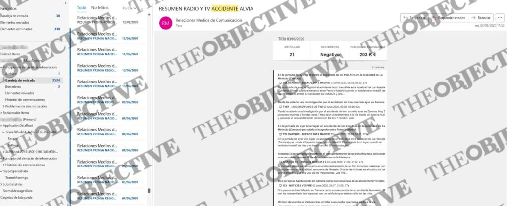 El impacto mediático de las noticias negativas siempre ha sido de gran preocupación para el Gobierno. De hecho, la entonces máxima responsable de ADIF, Isabel Pardo de Vera, vigiló atentamente la información que daban los medios sobre un accidente de tren que tuvo lugar en La Hiniesta (Zamora) el 2 de junio de 2020. El incidente se saldó con dos fallecidos y siete heridos por el descarrilamiento de un tren Alvia Ferrol-Madrid al arrollar un coche que se había quedado retenido en la vía.