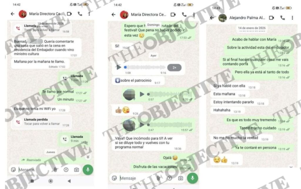 En el informe se adjuntan, por ejemplo, capturas de pantalla de la conversación con Gil, así como con Alejandro Palma, responsable de Asuntos Administrativos dentro del Cervantes, a quien el diplomático le advirtió dos semanas antes «del peligro que entrañaba esta propuesta» del embajador March y, sobre todo, «del uso indebido del IC como empresa canalizadora de fondos que se pretendía hacer».