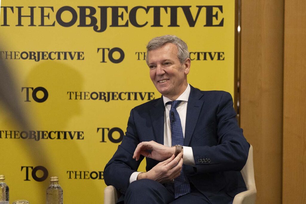 Alfonso Rueda (Pontevedra, 1968), presidente de la Xunta de Galicia, ha participado este viernes en el foro España futura. Galicia, un modelo de éxito, organizado por THE OBJECTIVE, en el que, en una conversación con su director, Álvaro Nieto, ha abordado diversas cuestiones de actualidad de España y Galicia. El presidente gallego asegura que no está dispuesto a que, como quiere Cataluña, se le exija a los inmigrantes hablar gallego para que puedan residir en la región. Sobre el futuro de España, si Pedro Sánchez pierde las elecciones previstas para 2027, augura que la realidad de lo que se puede encontrar el Partido Popular si llega al poder «superará los peores presagios»