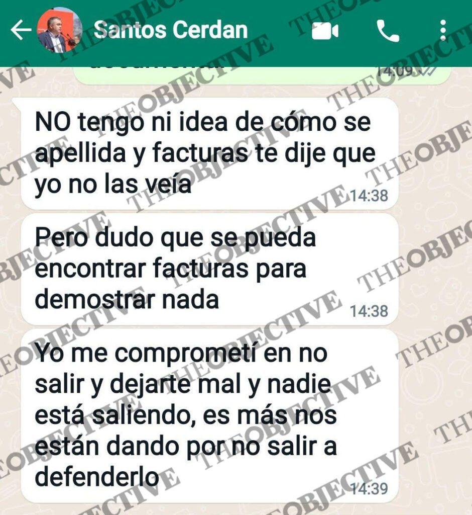 Las comunicaciones entre Ábalos y Cerdán en esos primeros días de noviembre del 2021, a las que tuvo acceso este periódico, evidencian que era su predecesor en el cargo quien presionó a Cerdán para que desmintiera las informaciones publicadas en THE OBJECTIVE. En esas noticias se hacía referencia a «una docena de fuentes de primer nivel del Gobierno y el PSOE» que habían revelado estas exclusivas autorizando su publicación, con el compromiso de que, ante la ausencia de pruebas documentales, nadie saldría a desmentir públicamente la información, como así fue. Por este motivo, ante la campaña orquestada por el Gobierno y ejecutada por sus satélites mediáticos, este periódico se quejó en privado de su soledad al no verse respaldado por quienes habían facilitado la información.