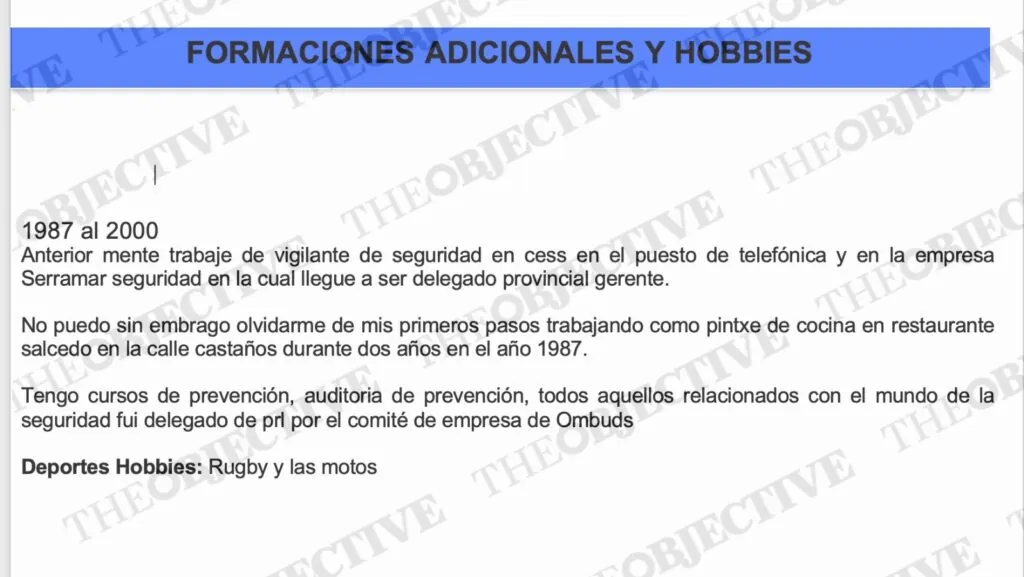 En el CV, Joseba intentó dar empaque a una trayectoria profesional que abarcaba desde 1987 hasta el año 2000. «Anterior mente trabaje de vigilante de seguridad en cess en el puesto de telefónica y en la empresa Serramar seguridad en la cual llegue a ser delegado provincial gerente [sic]», rezaba el texto, manteniendo el estilo original que no deja de ser sintomático del perfil que se intentaba promocionar. Como toque de distinción personal, el candidato consideró relevante incluir entre sus aficiones: «Rugby y las motos». Con este currículum en mano, Koldo no dudó: movió los hilos necesarios para «enchufar» a su hermano en varias empresas públicas vinculadas a la cartera que dirigía Ábalos. No fue una colocación residual; se trataba de puestos con nómina pública en compañías estratégicas para el Ministerio.