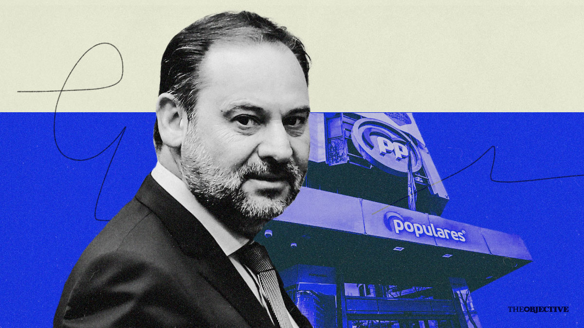 José Luis Ábalos y la sede del PP en la calle de Génova en Madrid. | Ilustración de Alejandra Svriz