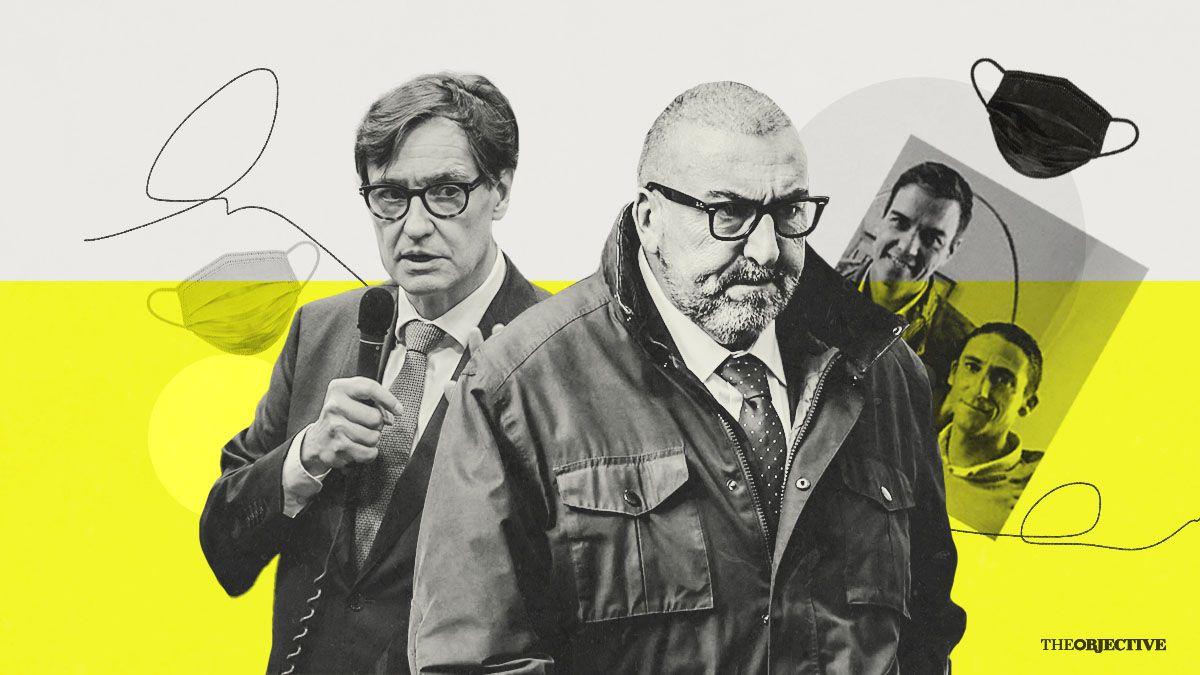 Salvador Illa, Koldo García, Pedro Sánchez y Cristian Corvillo. | Ilustración de Alejandra Svriz