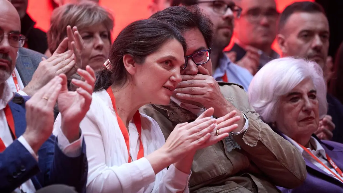 Óscar López conversa con Sánchez Acera en la clausura del Congreso del PSOE de Madrid el 2 de febrero. | Jesús Hellín (Europa Press)