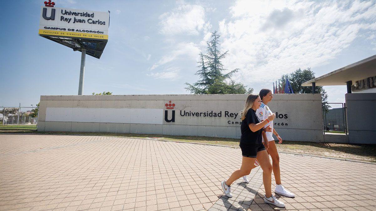 Dos chicas caminan por la universidad Rey Juan Carlos (URJC) del campus de Alcorcón. | Eduardo Parra (Europa Press)