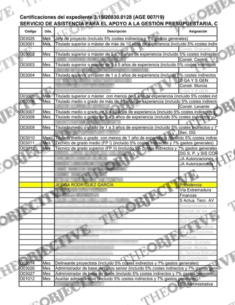 Tragsatec acredita en un documento que Jésica estaba adscrita a presidencia de ADIF