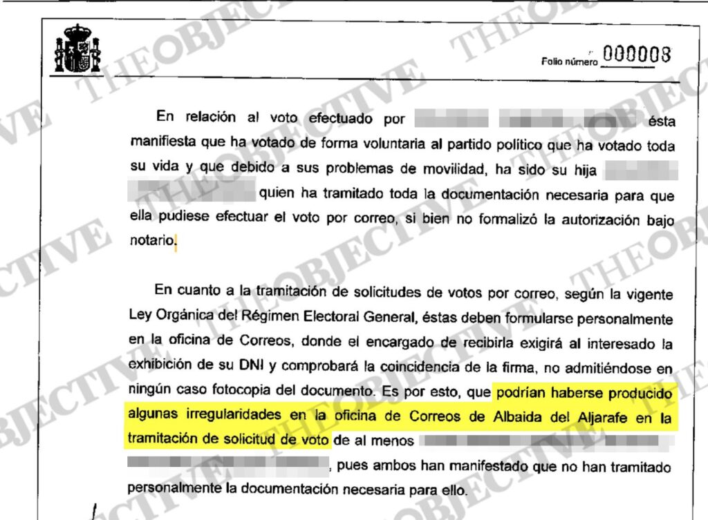 Los agentes detallan que la Ley Orgánica del Régimen Electoral General (Loreg) establece de forma tajante que la solicitud de voto postal debe formularse personalmente ante un empleado de Correos, quien ha de comprobar la identidad del solicitante mediante DNI original. No se admiten copias ni intermediarios, salvo con poderes notariales. Sin embargo, en Albaida del Aljarafe se han detectado múltiples casos donde estos trámites fueron obviados.