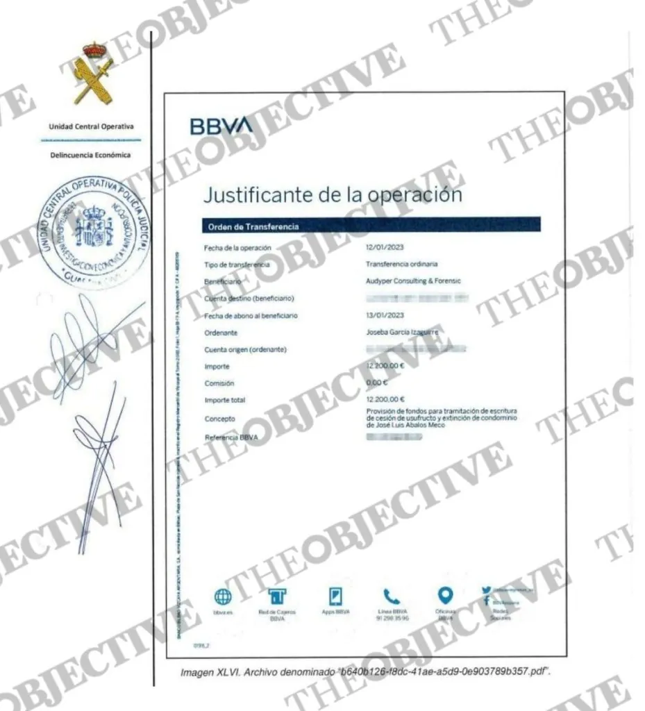 La factura hacía referencia a una «provisión de fondos para tramitación de escritura de cesión de usufructo y extinción de condominio» de Ábalos. Los agentes destacan que durante ese día se sucedieron diferentes comunicaciones entre el exministro; Koldo García; su esposa, Patricia Úriz; el hermano del asesor y Víctor Ábalos que «permiten colegir que este último podría haber proporcionado el efectivo necesario para compensar el desembolso realizado por Joseba».
