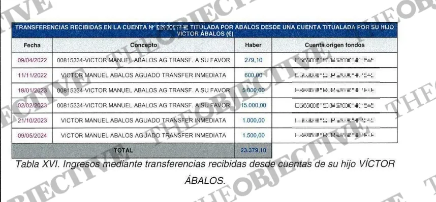 La UCO advierte de que Víctor Ábalos también habría facilitado a su padre «fondos en metálico con origen desconocido» de forma recurrente desde al menos 2022. De esa manera habría constituido «una vía de provisión de fondos al margen de sus ingresos declarados».