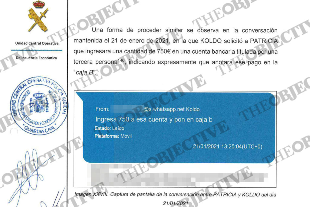 El 21 de enero de 2021, el exasesor de José Luis Ábalos, Koldo García Izaguirre, ordenó una transferencia a nombre de una ciudadana de origen cubano, Dámaris O. T. En las conversaciones encontradas en los teléfonos móviles intervenidos por la Unidad Central Operativa (UCO) de la Guardia Civil aparece un mensaje que Koldo envió a su mujer, Patricia Úriz, dándole instrucciones de pago a un número de cuenta de una oficina del BBVA en Getafe a nombre de esta mujer. «Ingresa 750 a esa cuenta y pon en caja B», señala la mano derecha del ministro.
