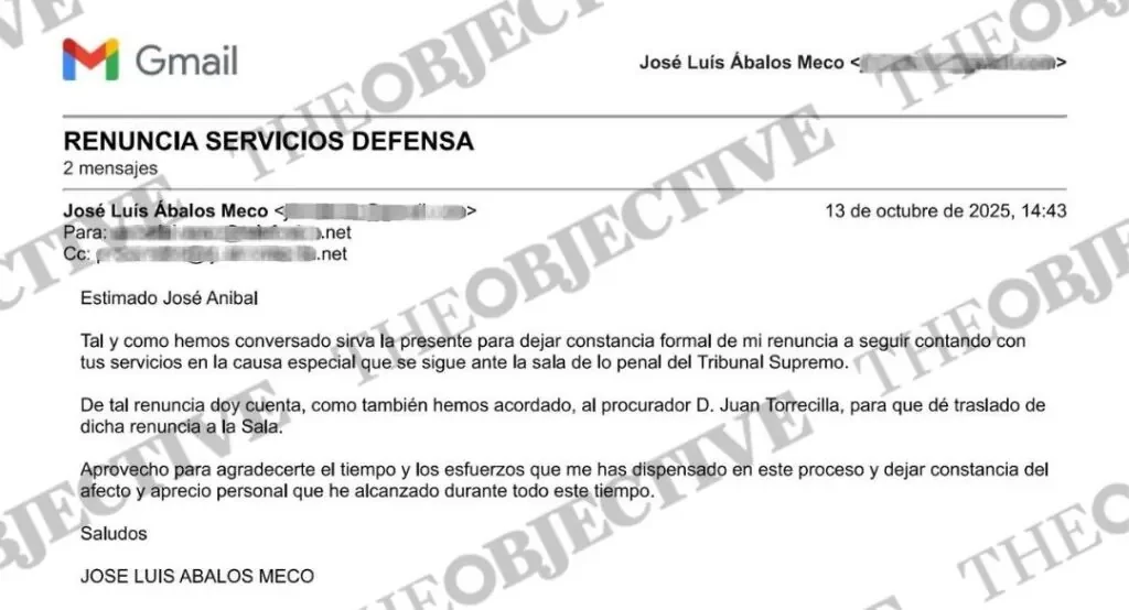 Ábalos explicó en un escrito al Supremo que la ruptura con su abogado se ha producido tras «un deterioro irreversible de lo que debiera ser una relación basada en la confianza». Este mismo lunes, el exministro envió un correo electrónico a Álvarez para renunciar a sus servicios. «Aprovecho para agradecerte el tiempo y los esfuerzos que me has dispensado en este proceso», insistió el exdirigente socialista tras las dudas con Álvarez.