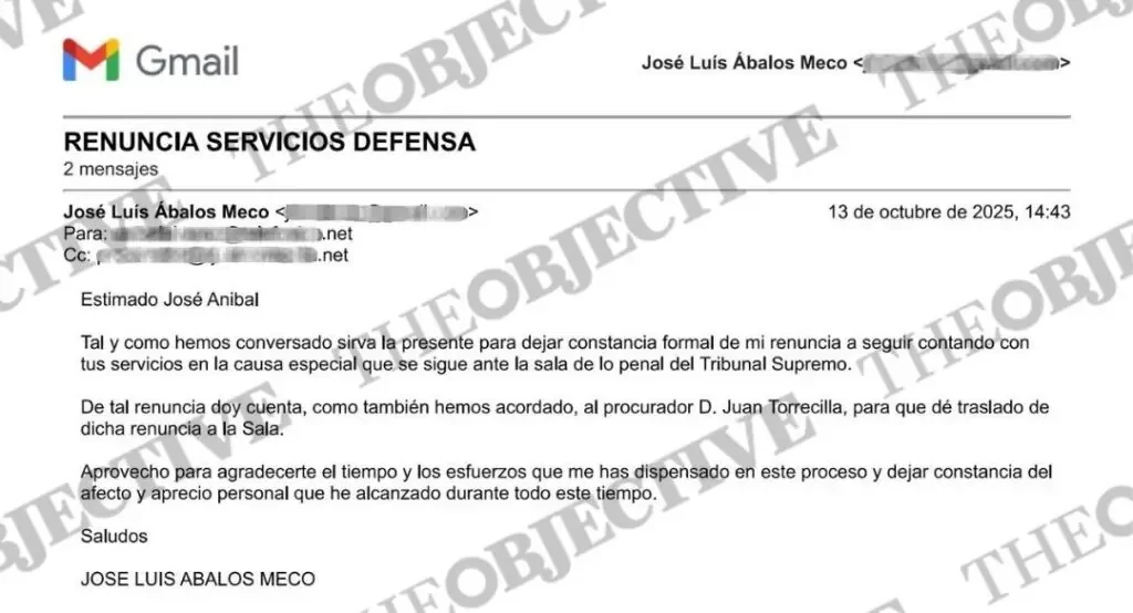 «En ambas declaraciones la defensa de Ábalos será desarrollada por el letrado don José Aníbal Álvarez García salvo que designara a otro en su lugar que estuviera en condiciones de asumir este día su defensa», acuerda el juez en un auto al que ha tenido acceso THE OBJECTIVE. Puente da tres días de plazo al exministro para que designe un nuevo abogado. En caso de no hacerlo, nombrará uno de oficio. Solo entonces, insiste el magistrado, «se tendrá por efectuada la renuncia y cesará en su función en esta causa especial el letrado José Aníbal Álvarez».
