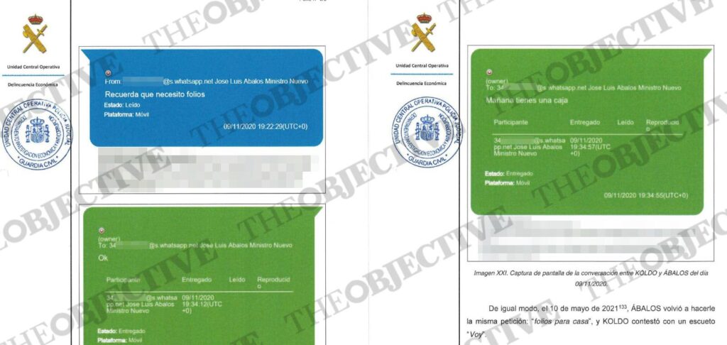 La sospecha del Instituto Armado es que el mecanismo de pagos en sobres con dinero en metálico se produjo desde el principio del mandato de Ábalos en el Ministerio de Transportes y como secretario de Organización del PSOE. El primer mensaje que se recoge en el informe patrimonial de la UCO sobre Ábalos data de marzo del 2020, pero el segundo está fechado en noviembre del mismo año. Exactamente un mes después de que Carmen Pano acudiera a la sede del PSOE a entregar los 90.000 euros a Ferraz en el mes de octubre. «Recuerda que necesito folios», solicito el ministro Ábalos a Koldo García el 9 de noviembre de 2020. «OK. Mañana tienes una caja», respondió su mano derecha en el Ministerio de Transportes y en el PSOE.