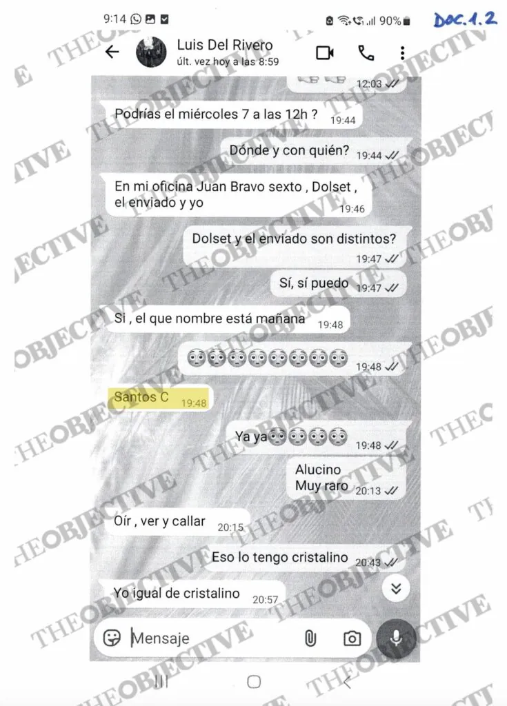 Las pruebas ahora aportadas señalan de forma inequívoca a Santos Cerdán como la persona que representaba al PSOE y que hablaba en nombre del Gobierno cuando la trama ofrecía favores judiciales a cambio de información. Así se lo trasmitió Del Rivero al convocarle a una reunión en su oficina con Leire Díez y Javier Pérez Dolset.