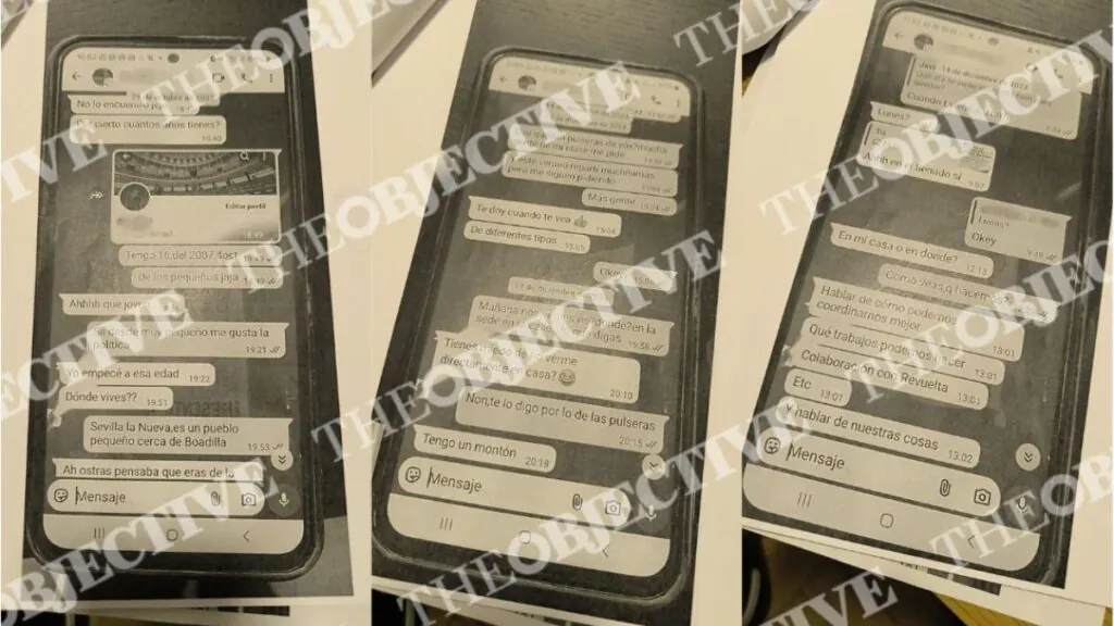 Antes de aquel episodio, el supuesto agresor había escrito preguntas improcedentes por WhatsApp al menor, a sabiendas de que tenía 16 años, cuestión que se encargó de comprobar, tales como «carne o pescado» o «chicos o chicas». Después de la agresión también continuó acosando al denunciante: «Desde su cuenta personal y desde la cuenta oficial del partido VOX (que él manejaba) me contestaba a stories (publicaciones que están visibles durante 24 horas) con corazones y caras con corazones».