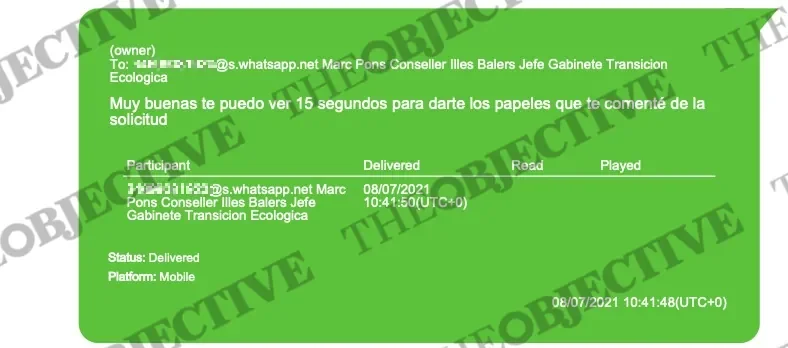 El asesor ministerial de José Luis Ábalos escribió al jefe de Gabinete de Ribera, Marc Pons, el 8 de abril de 2021, dos meses después de que los socios de Aldama se reunieran con el jefe de Gabinete de Maroto, Juan Ignacio Díaz Bidart, para abordar la licencia de Villafuel. Koldo García le envió una fotografía en la que aparecía el número de expediente y varios documentos relativos a la empresa, que había pedido convertirse en operador en enero de ese año. El actual portavoz adjunto del PSOE en el Parlamento balear no respondió.