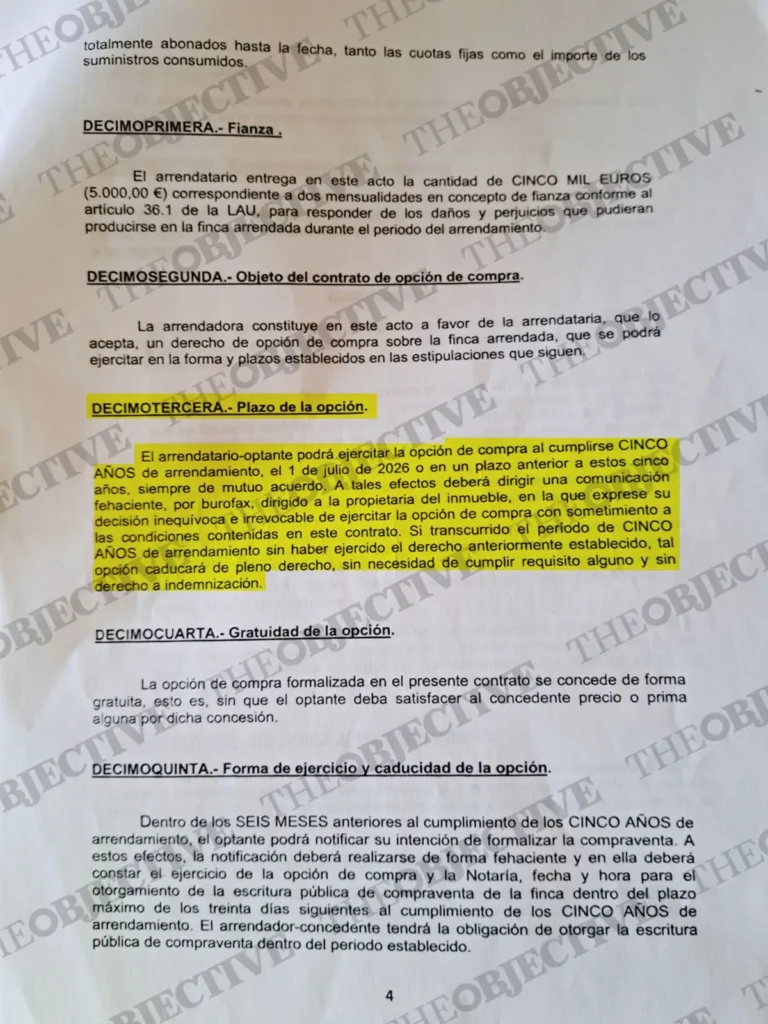 Según la documentación que obra en poder de este periódico, el entonces titular de Transporte firmó un contrato de arrendamiento de una vivienda en la urbanización La Alcaidesa (Cádiz) con opción a compra. El convenio estipulaba que la renta mensual debía ser de 2.500 euros. Sin embargo, el apartado decimotercero establecía que: «El arrendatario-optante podrá ejercitar la opción de compra al cumplirse cinco años del arrendamiento, el 1 de julio de 2026 o en un plazo anterior a estos cinco años, siempre de mutuo acuerdo».