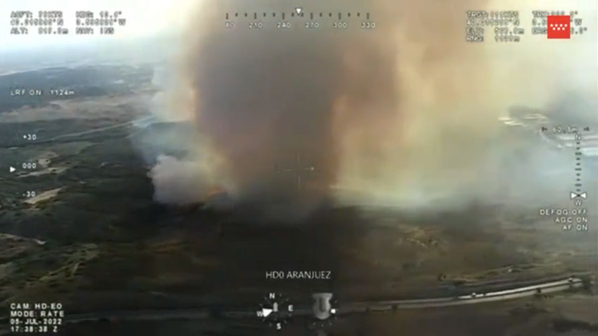 El incendio en el palacio de Osuna de Aranjuez se declaró sobre las 20.45 del miércoles extendiéndose con rapidez a viviendas aledañas.
