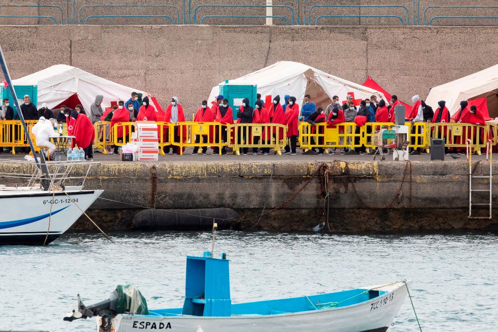 Los inmigrantes rescatados, entre ellos 35 mujeres y siete niños, han sido trasladados al Muelle de Arguineguín