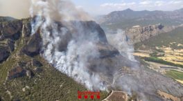 El fuego de Artesa de Segre ya ha afectado a unas 500 hectáreas, aunque los bomberos calculan que el incendio podría alcanzar las 20.000 hectáreas