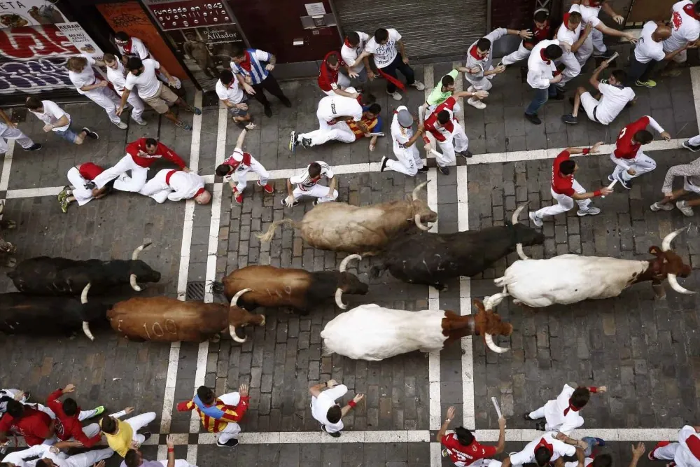Los toros de la ganadería gaditana de La Palmosilla han corrido un cuarto encierro de los Sanfermines 2022 veloz, con una duración de dos minutos y 29 segundos.