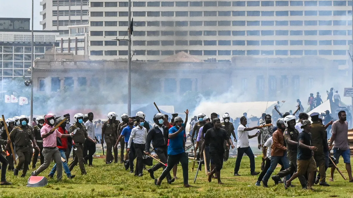 Varios escuadrones militares han comenzado a despejar las calles de manifestantes, aunque todavía hay miles de personas concentradas frente a la residencia del presidente, Gotabaya Rajapaksa