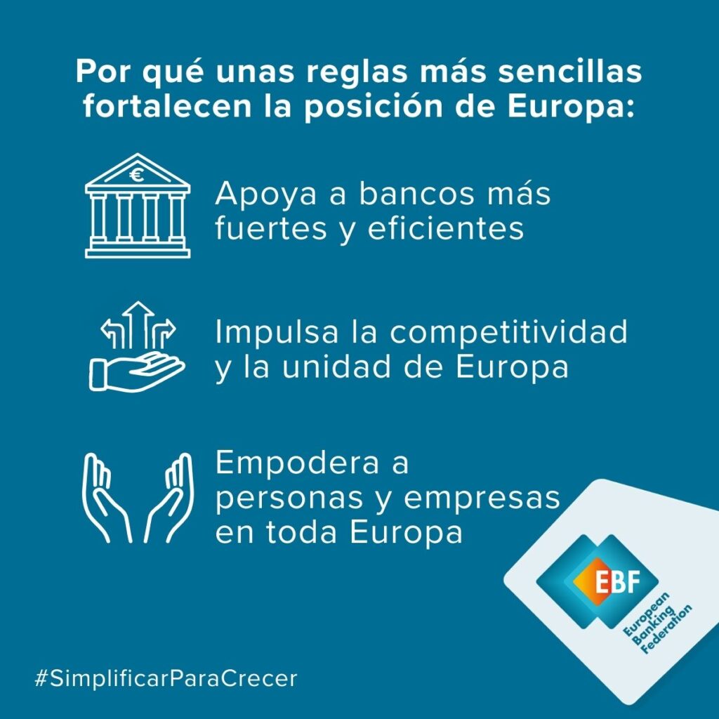 La banca europea ha puesto en marcha una movilización sin precedentes para situar la simplificación regulatoria y supervisora en el centro de la agenda económica de la Unión Europea. No es para menos: ofrecer al sistema financiero un marco regulatorio que le permita competir en igualdad de condiciones con el resto del mundo e impulse la financiación al sector productivo y a las administraciones es vital para el futuro de Europa.