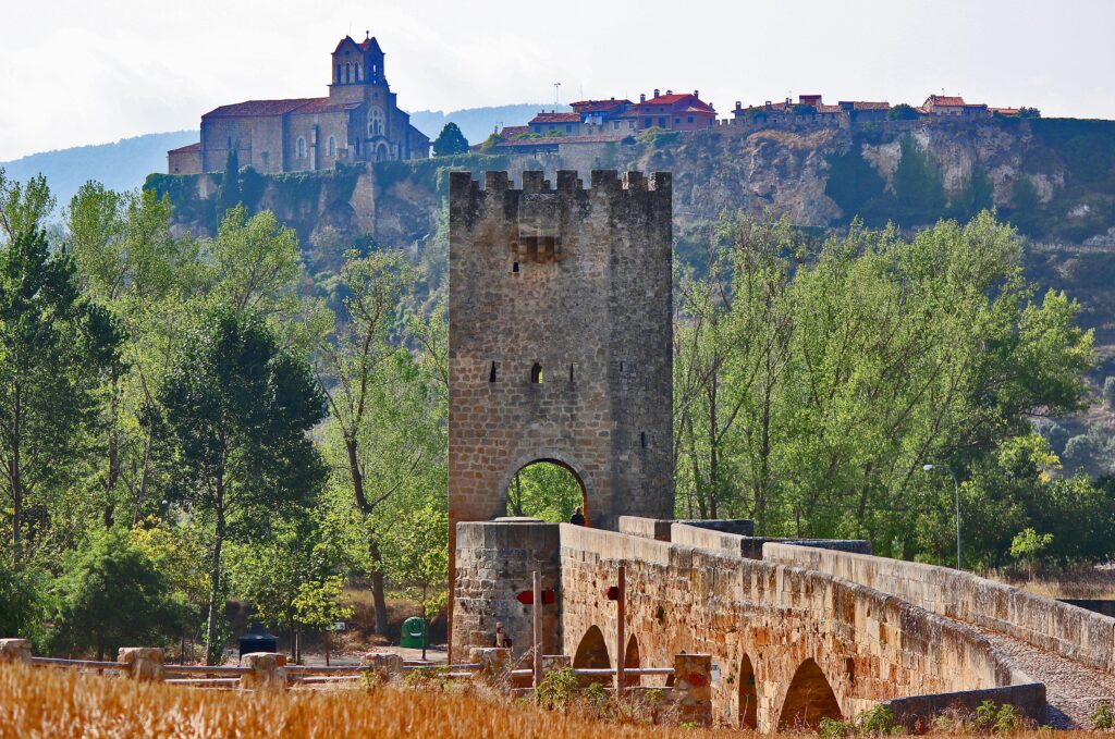 Pero si algo sostiene el relato de este territorio son sus pueblos. Nombres que suenan a historia y a frontera. Frías, considerada la ciudad más pequeña de España, se encarama sobre el valle del Ebro con sus casas colgadas y su castillo medieval. Oña y Medina de Pomar evocan los orígenes de la Castilla histórica con el Monasterio de San Salvador y el Alcázar de los Condestables como grandes referentes. Santa Gadea del Cid, Conjunto Histórico-Artístico y uno de los Pueblos Más Bonitos de España, conserva intacto su aire medieval.