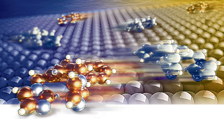 Investigadores de la Universidad de Oviedo, en colaboración con científicos en el Reino Unido y China, han llevado a cabo simulaciones mecánicocuánticas de la difusión de una molécula quiral real sobre una línea de átomos de una superficie de cobre.