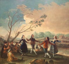 Los fondos del Prado nos sugieren un recorrido por danzas tradicionales gallegas, castellanoleonesas, madrileñas y andaluzas. La iconografía se centra en bailes que servían para celebrar el fin de la jornada de trabajo o los festejos religiosos.