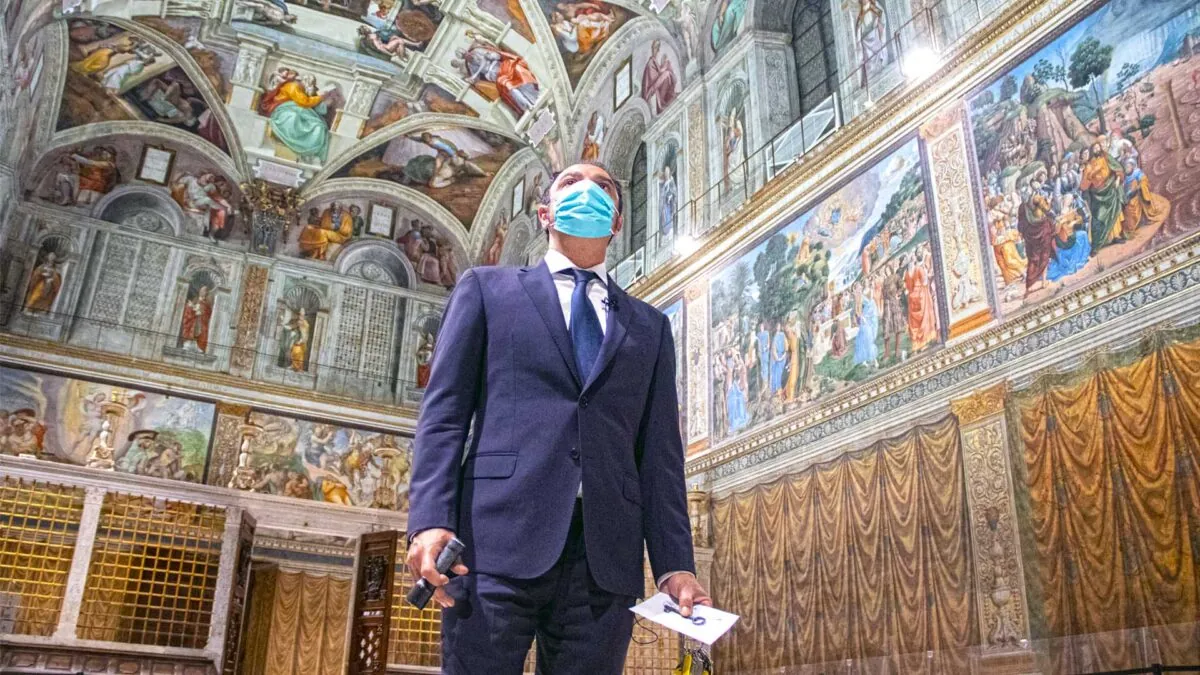 Son las 5:15 de la mañana y no hay ni una sola alma en las calles de El Vaticano, habitualmente abarrotadas de turistas. Una puerta de hierro, flanqueada por un muro de piedra y dos estatuas, que representan a los artistas Rafael y Miguel Ángel, da acceso a los Museos Vaticanos. Suena una llave y la puerta metálica se abre. Al otro lado aparece Gianni Crea con traje azul, corbata a juego y zapatos negros. Sencillez y clase made in Italy.