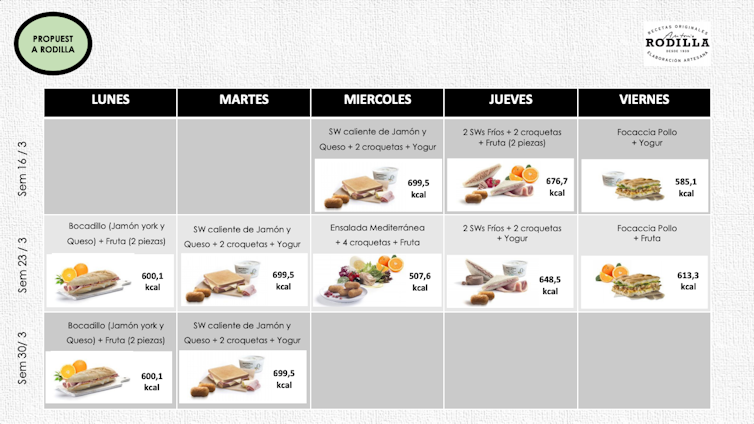 Algo parecido ocurre con el menú de Rodilla, quienes insisten en añadir patatas fritas de bolsa, sin gluten, a todos los menús. Detalle que lejos de mejorar el valor nutritivo lo empeora. Comer a base de sándwiches es probable que, además, no consiga saciar a los niños corpulentos o de más edad.