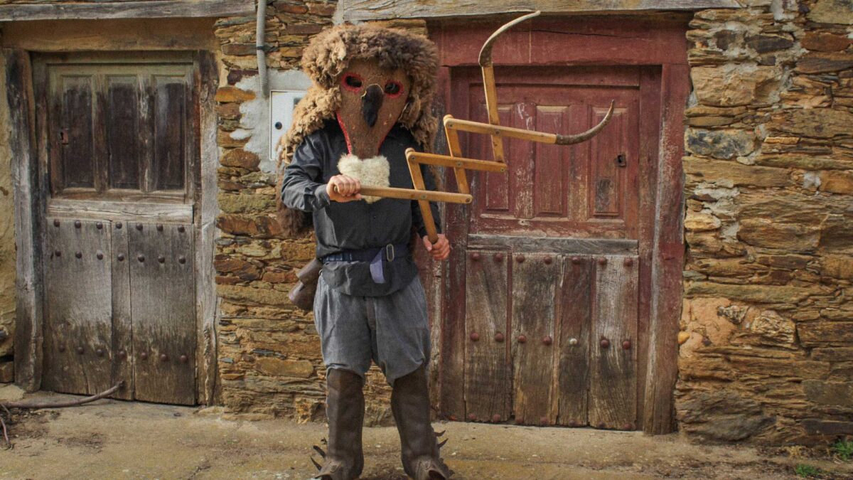 Dentro del corral esperan cinco jóvenes. Junto a ellos, un pesado baúl metálico, abierto, en el que varias manos rebuscan entre objetos y prendas de ropa. «Ale, ¡aquí tienes las máscaras!». El que ha hablado es Adrián Blanco, joven de 29 años que muestra con orgullo una enorme pieza hecha de corcho, lana de oveja y pelo de jabalí.