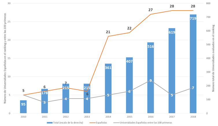 Bien podría pensarse que solo se someten a evaluación aquellas universidades que saben que pasarán bien el examen, pero los datos contradicen esta hipótesis. Son cada vez más las universidades evaluadas: 719 en todo el mundo en 2018 y, de ellas, 28 de nuestro país. Siete instituciones españolas figuran entre las 100 primeras, con la Universidad de Alcalá a la cabeza.