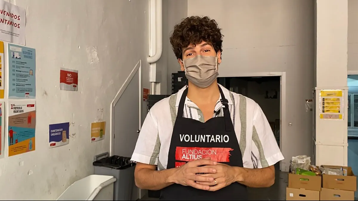 A las puertas de la sede madrileña de la fundación Altius espera, desde las nueve de la mañana, un pequeño grupo de personas para recoger su comida del día. El reparto no empieza hasta la una, pero prefieren estar ahí los primeros: saben que después la cola se alarga. Al otro lado está Carlos Soler, un granadino de 28 años que, desde hace unos meses, cocina un menú cada domingo para quien lo pueda necesitar. Apenas lleva unas semanas en este local, pero antes ya lo hacía en la plaza de Jacinto Benavente, en Madrid, donde la cola llegó a ser de 200 personas.