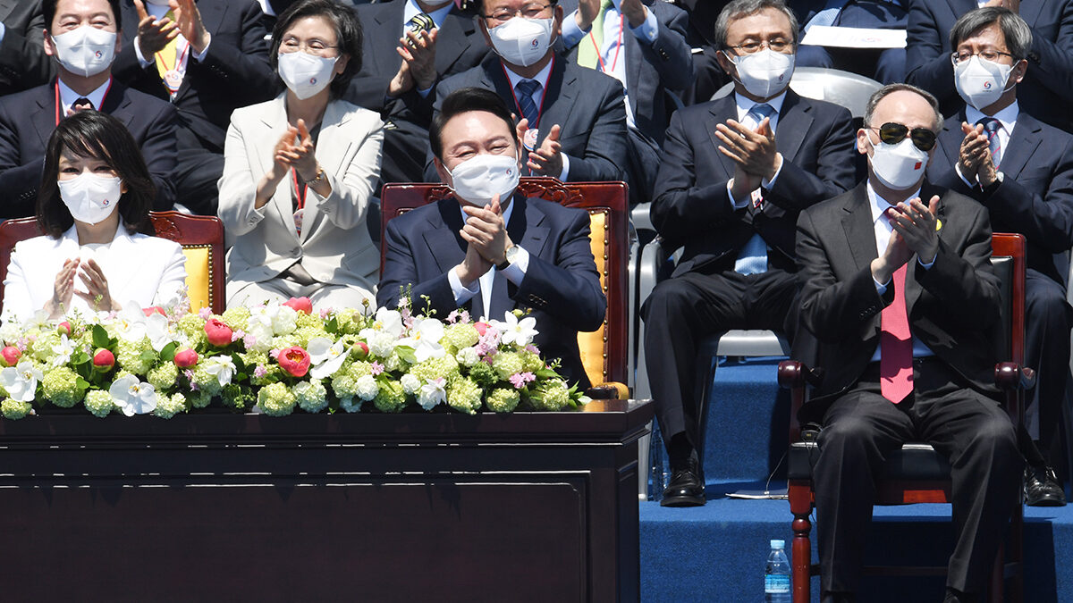 El Vicepresidente chino, Wang Qishan, aplaude durante la ceremonia inaugural por el presidente de Corea del Sur, Yoon Suk-yeol, en frente de la Asamblea Nacional en Seúl, Corea del Sur.