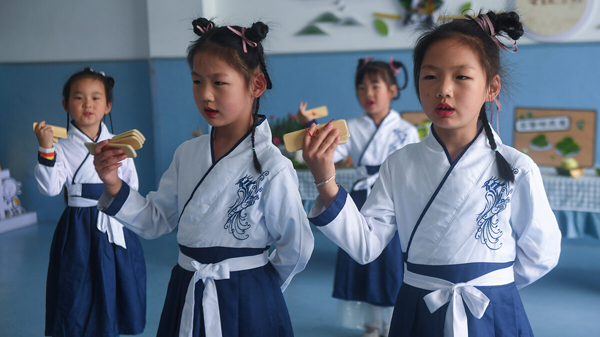 Niños de un jardín de infantes realizan un espectáculo que muestra la cultura del té en la ciudad de Lishan en el distrito de Fuyang de Hangzhou, provincia de Zhejiang. La ciudad de Lishan llevó a cabo una serie de actividades para promover la cultura tradicional china del té y celebrar el Día Internacional del Té, que se celebra anualmente el 21 de mayo.